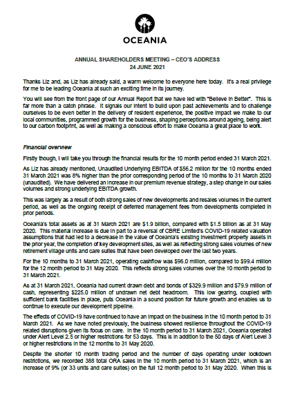 Annual Meeting 2021 - CEO's Address